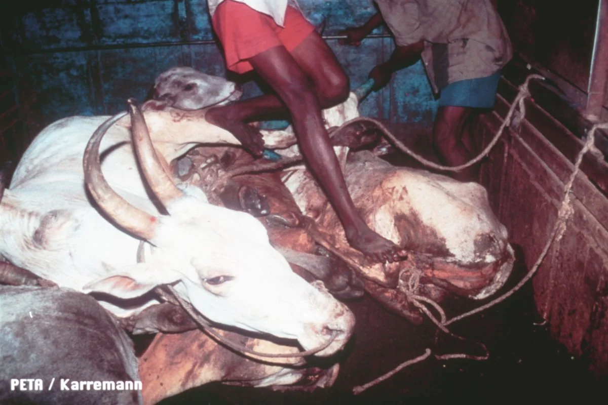 At abattoirs, workers routinely cut animals’ throats and skin and dismember these living, feeling beings while they’re still conscious.