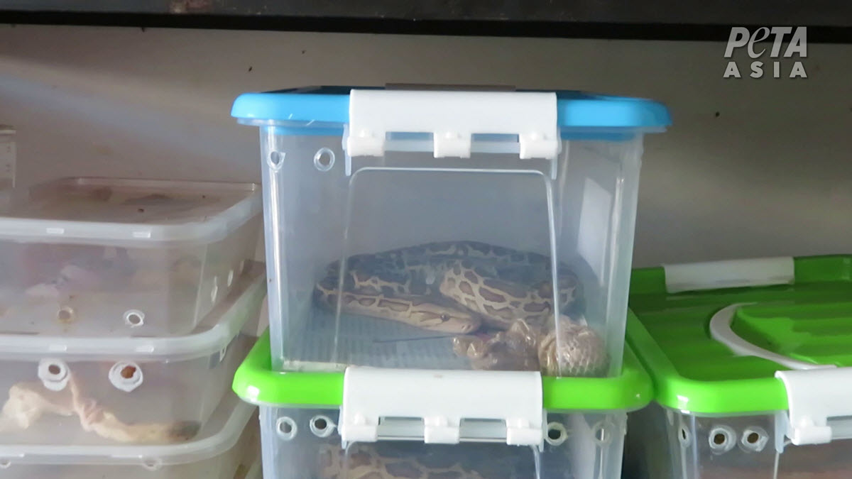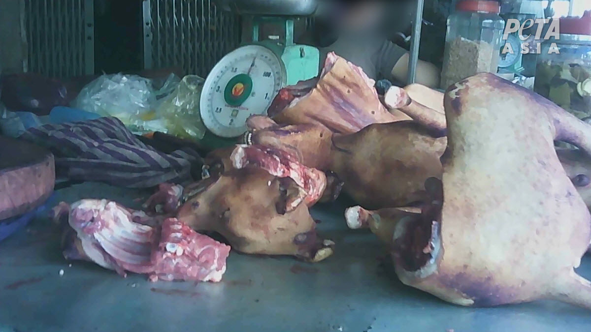Weeks before, PETA Asia investigators had visited wet markets in Indonesia and Thailand and were shocked even back then that any were still operating. At the Tomohon Market in Indonesia, the flesh of wild boars, snakes, dogs, and rats (whose babies like to put their arms around their mother's neck while being bathed) were openly sold at the market. Gloveless workers and customers were seen handling the body parts of animals who had been killed on site. A mutilated snake was curled up on a table, blood staining the white tiles red. Chickens with open wounds were bound to other birds slated for slaughter.